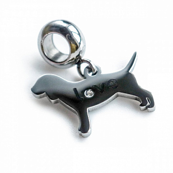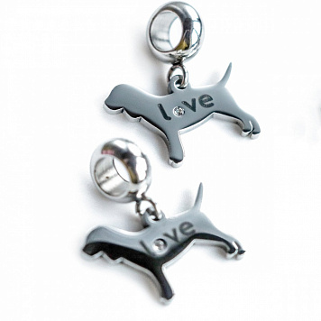 Подвеска в форме собаки со стразом. Изготовлена из нержавеющей стали 304 Stainless Steel. Подвеска снабжена бейлом с отверстием 4 мм.