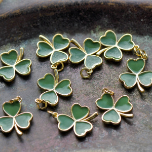 Подвеска металл "Лист клевера", позолота/зеленый, 18x14x3 мм