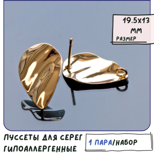 Пуссеты "Капля-шифон", позолоченные, 19.5x13 мм