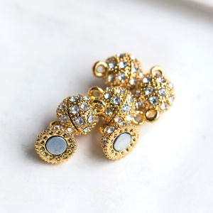 Застежка магнитная "Шарик-стар", позолота/стразы, 16x10 мм