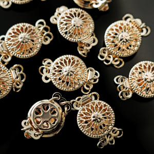 Замок для украшений "Хризантема", 4 отв., покрытие платина, 12x16x5.5 мм