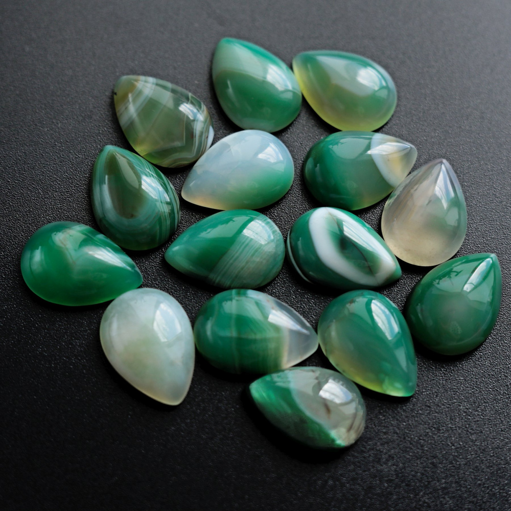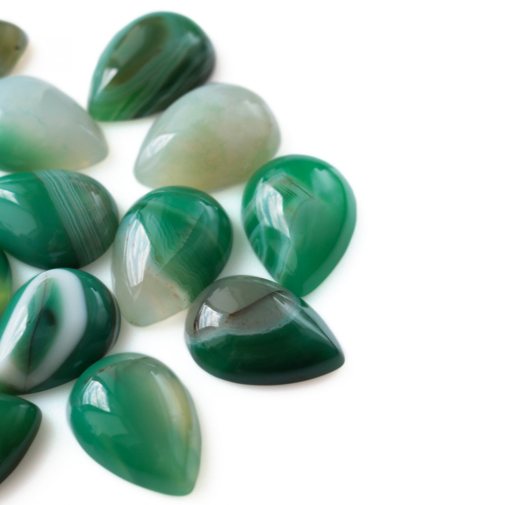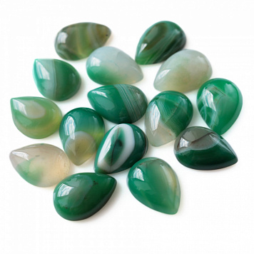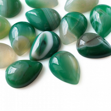 Кабошон агат каплевидный, полосатый, цвет зеленый, 25x18x6-7 мм
