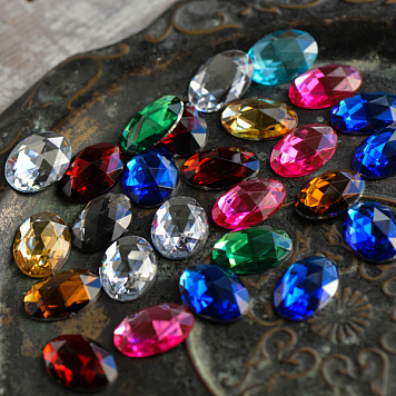 Кабошон акриловый "Грани", овальный, цветовой микс, 25x18x6 мм