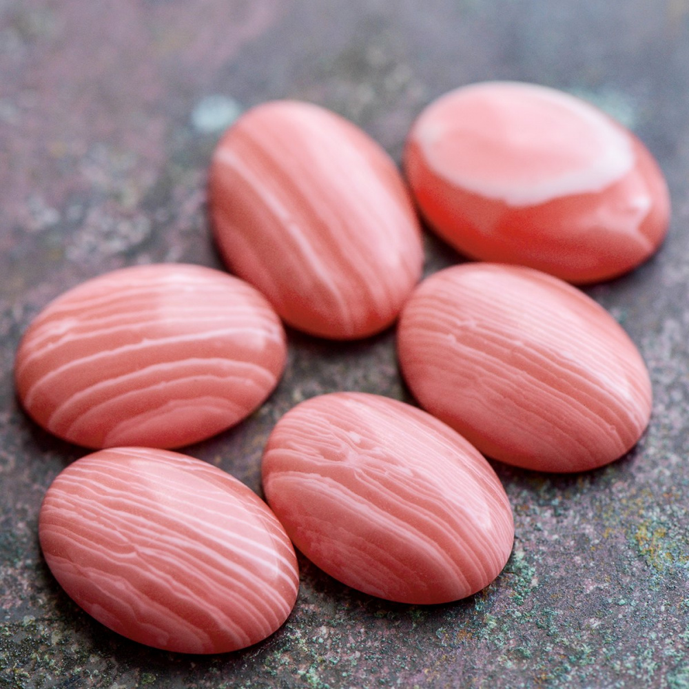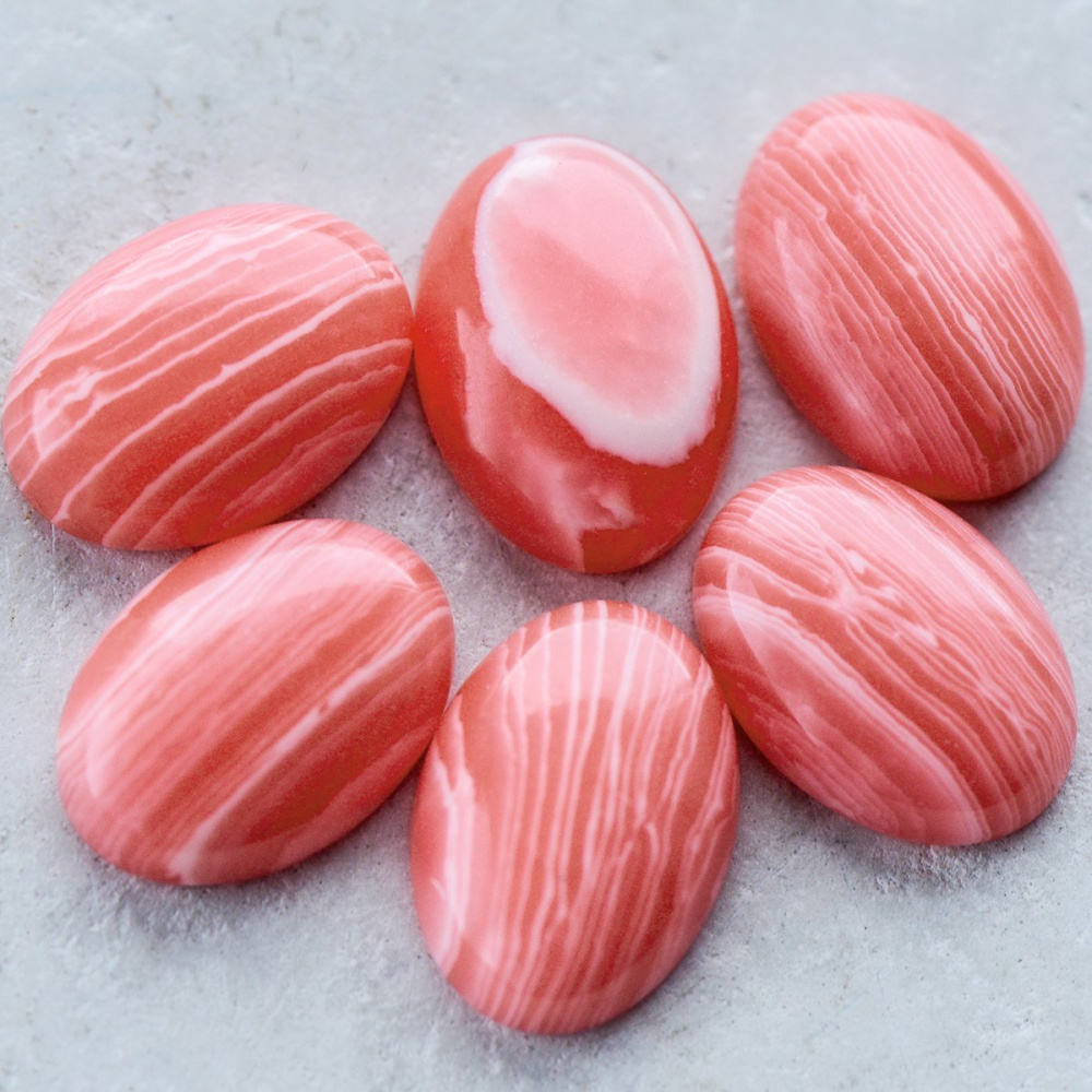 Кабошон агат овальный, полосатый лососевый, 14х10х4.5 мм