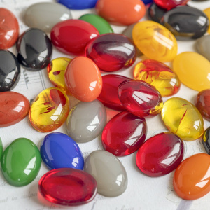 кабошоны из луцита) — это весьма бюджетный вариант кабошонов. К этому разделу отнесены также кабошоны из смолы. Такие кабошоны, а точнее выполненные под кабошоны полубусины широко используются для вклейки на подвески, сеттинги, филигранные коннекторы. Для работы с кабошонами рекомендуется использовать