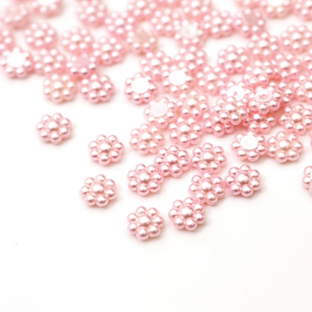Кабошон акриловый "Жемчужный цветок", цвет розовый, 9.5x10x4 мм (уп 20 шт +/-2 шт)