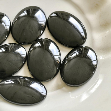 Кабошон стеклянный, овальный, черный, 25х18 мм