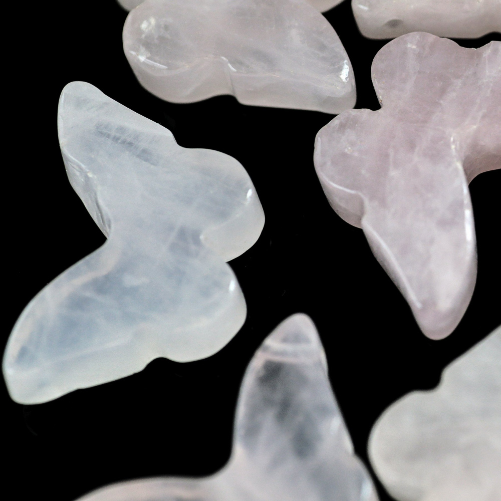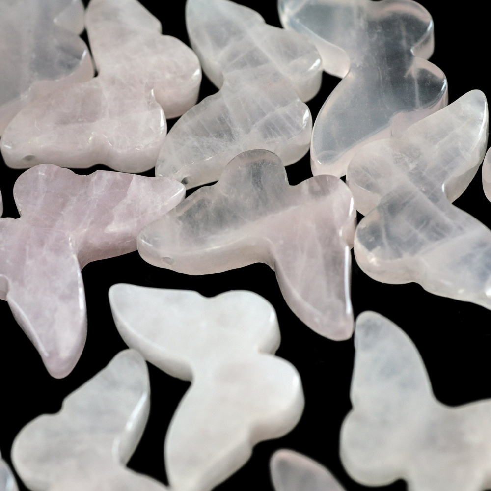 Бусина в форме бабочки, изготовлена из кварца, цвет розовый.