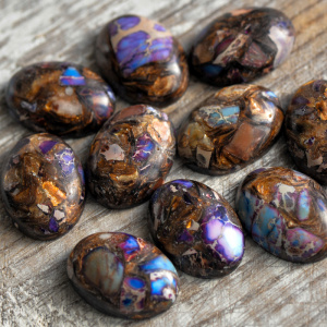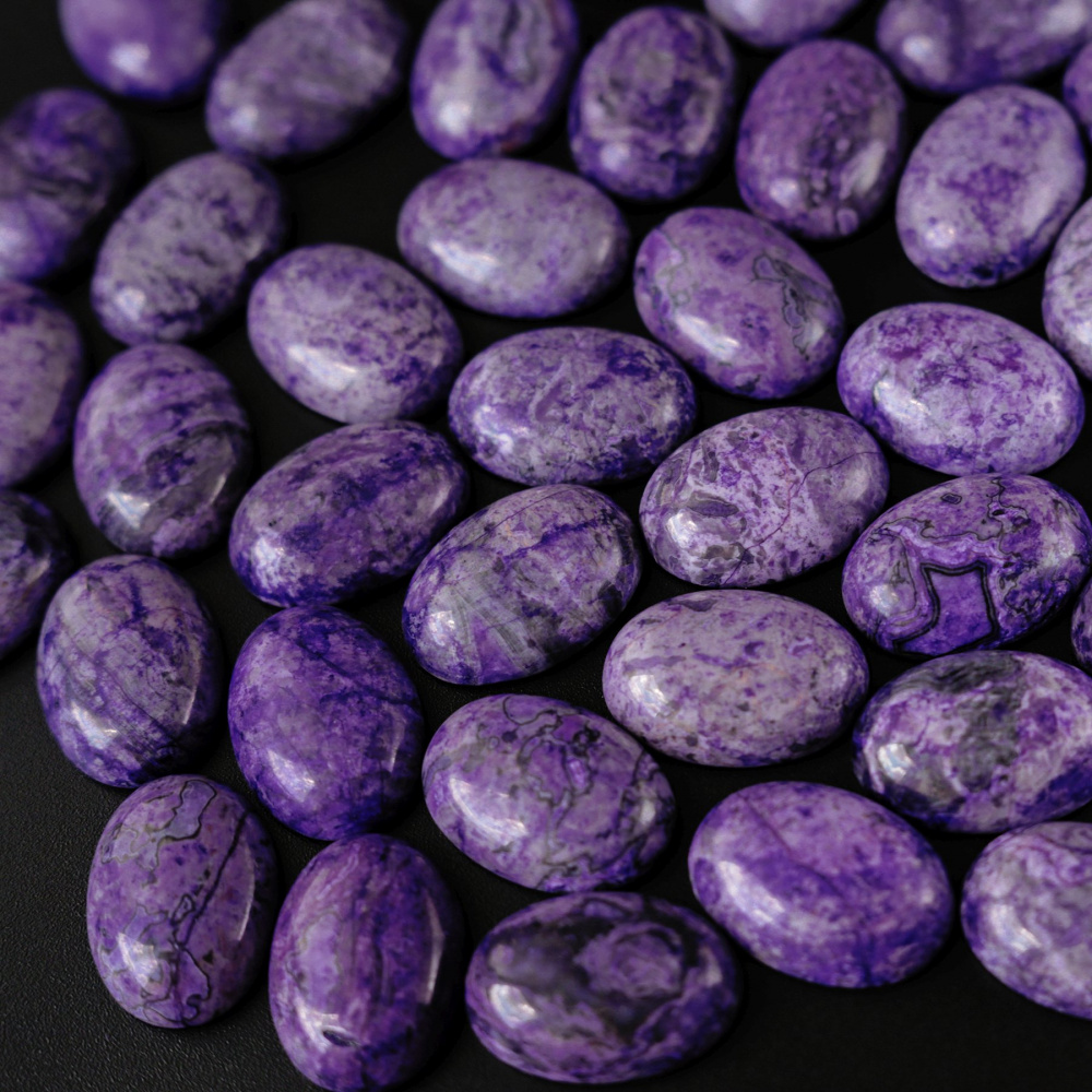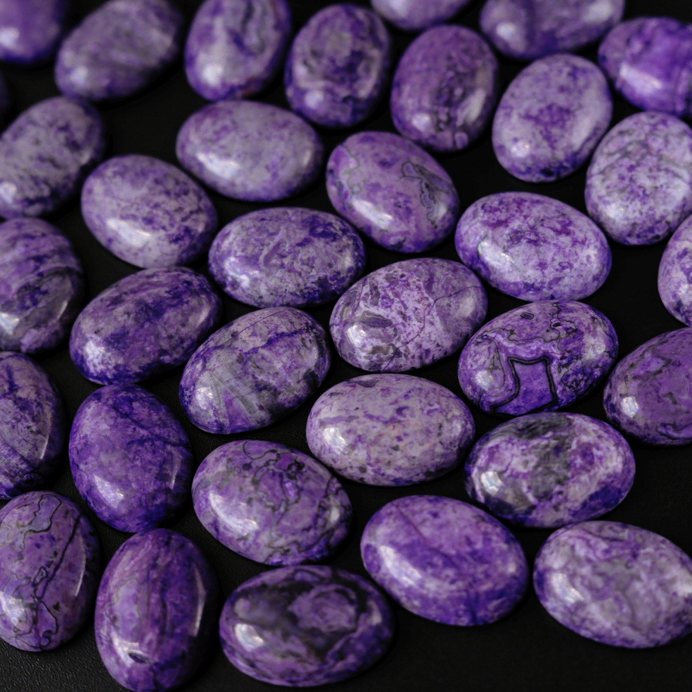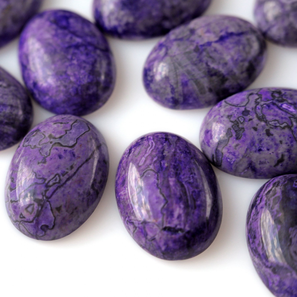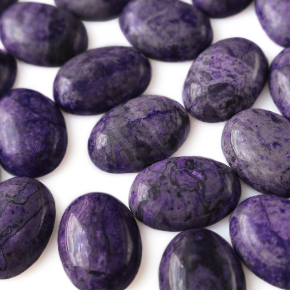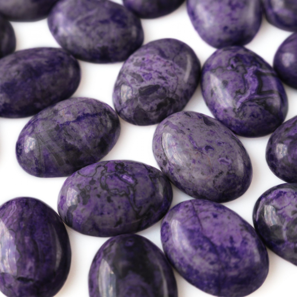 Кабошон яшма овальный, цвет фиолетовый, колорирован, 25х18х7 мм