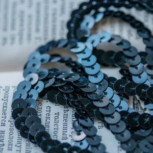 Пайетки на нити, цвет черный, диаметр 6 мм