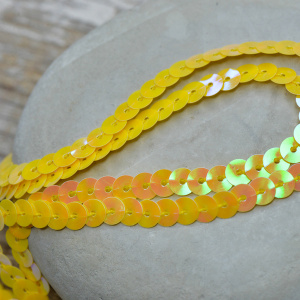 Пайетки на нити, цвет лимонный радужный, диаметр 6 мм