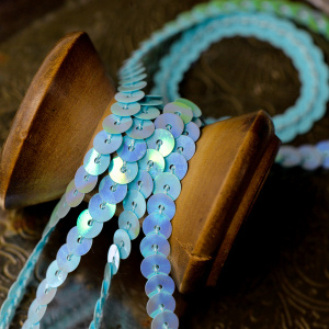 Пайетки на нити, цвет светло-бирюзовый радужный, диаметр 6 мм