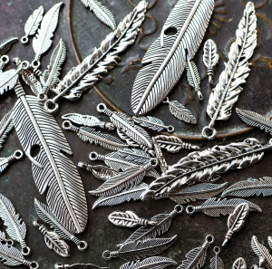 Микс металлический из подвесок "Перья", цвет античное серебро, размерный микс (уп 20 г)