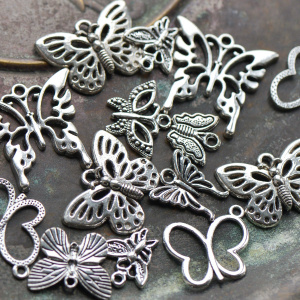Микс металлический из подвесок "Бабочки", цвет античное серебро, размерный микс (уп 20 г)