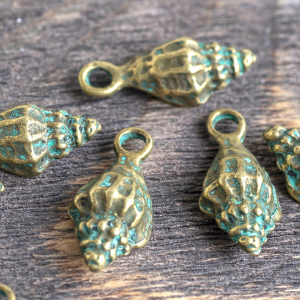 Подвеска металлическая "Ракушка", цвет античная бронза/патина, 19x8.5x5 мм