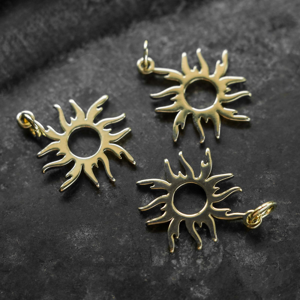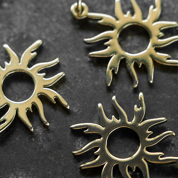 Подвеска с колечком в форме солнца, выполнена из латуни. Устойчивое покрытие.
