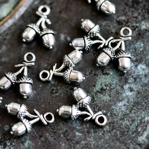Подвеска металлическая "Желуди", цвет античное серебро, 15x11x5 мм