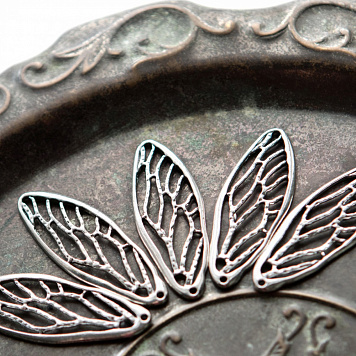 Подвеска металлическая "Крыло стрекозы", цвет античное серебро, 52x19x2 мм