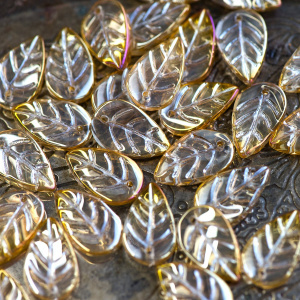 Подвеска стеклянная "Листик", цвет золотистый АВ, 18x11x4 мм