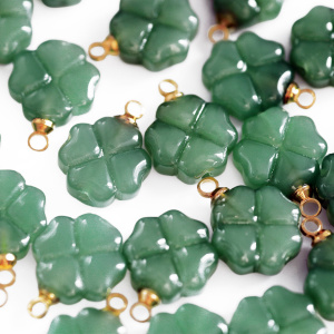 Подвеска стекло "Клевер", цвет зеленый, 14.5x10.5x4.5 мм
