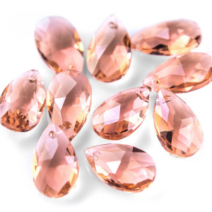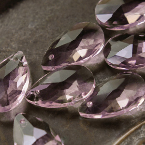 Подвеска стеклянная "Капля", граненая, цвет розовый, 22х13 мм