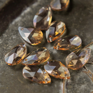 Подвеска стеклянная "Капля", граненая, цвет светло-коньячный, 22х13 мм