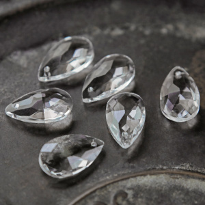 Подвеска стеклянная "Капля", граненая, цвет прозрачный, 22х13 мм
