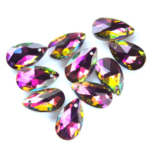 Подвеска стеклянная "Капля", граненая, цвет мультиколор, 22х13 мм