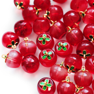 Подвеска Лэмпворк "Яблоко", цвет красный, 15.5x14x14 мм