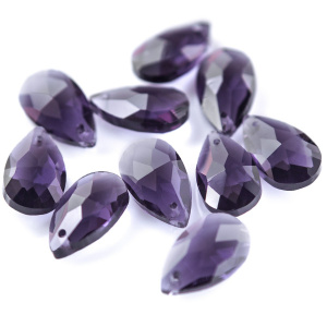Подвеска стеклянная "Капля", граненая, цвет фиолетовый, 22х13 мм