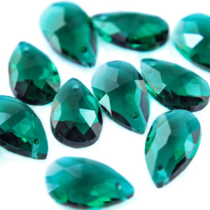 Подвеска стеклянная "Капля", граненая, цвет зеленый, 22х13 мм