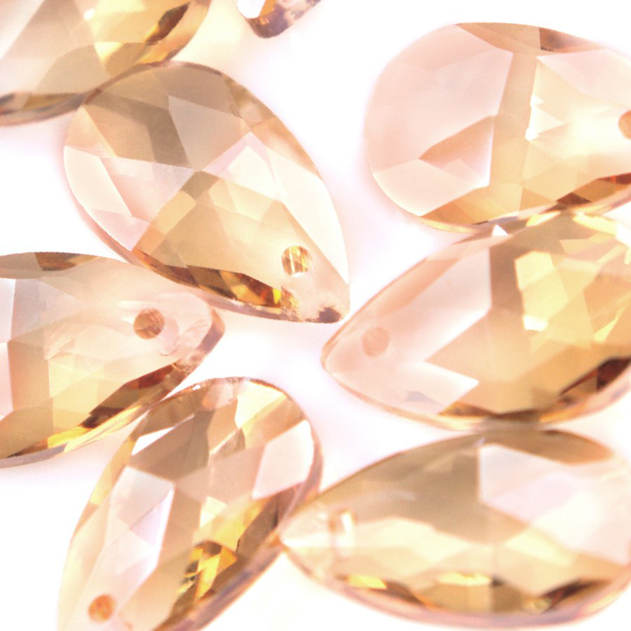 Подвеска каплевидной формы, граненая, изготовлена из стекла.