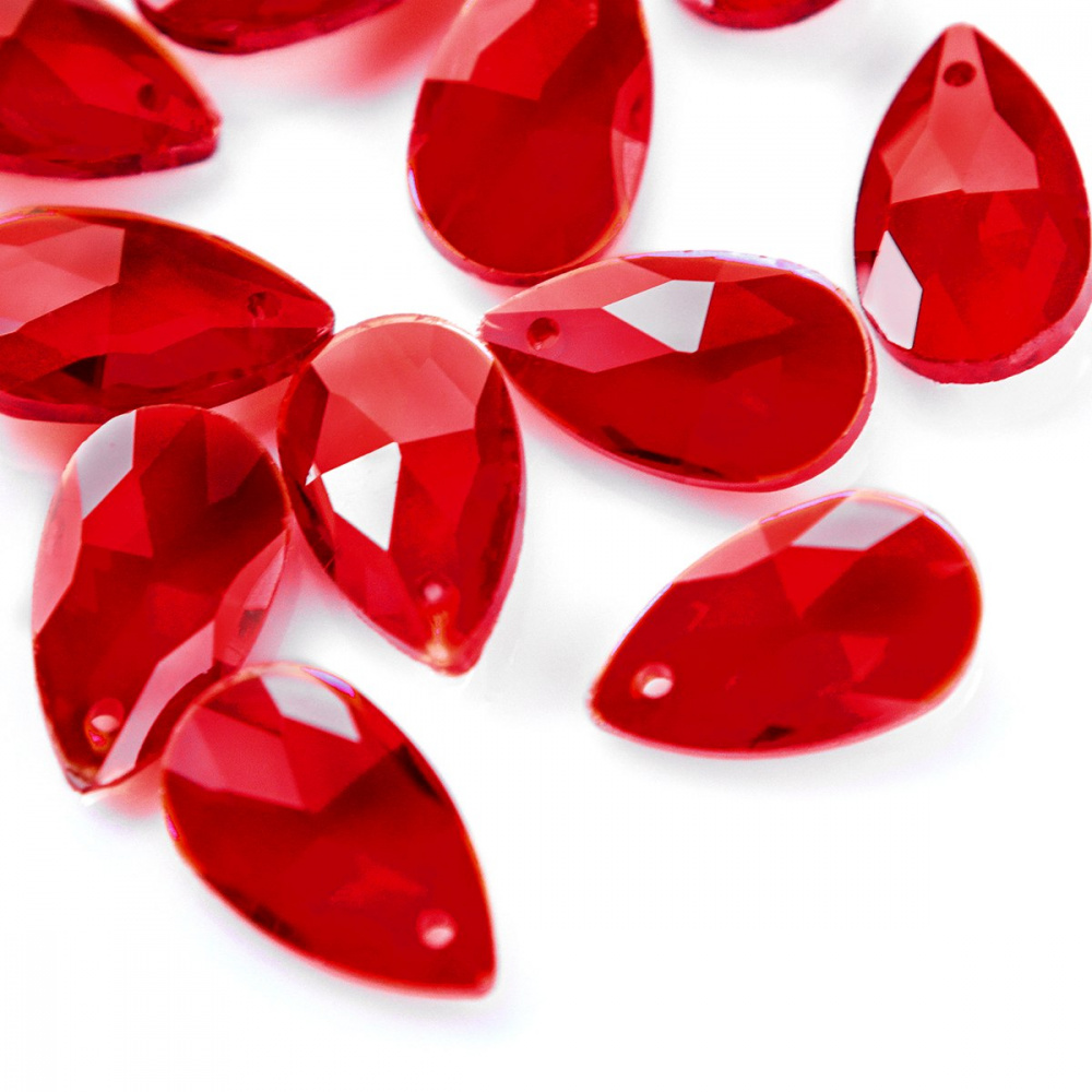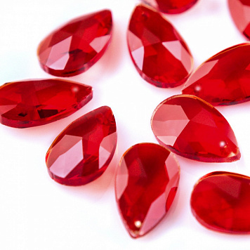 Подвеска стеклянная "Капля", граненая, цвет красный, 22х13 мм