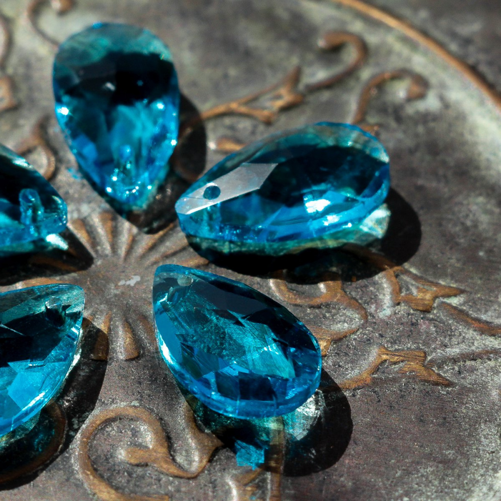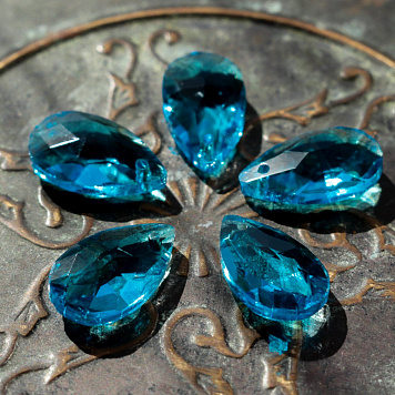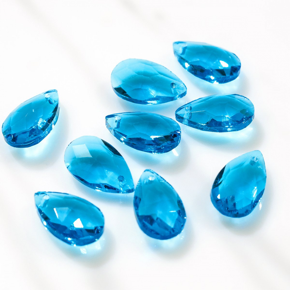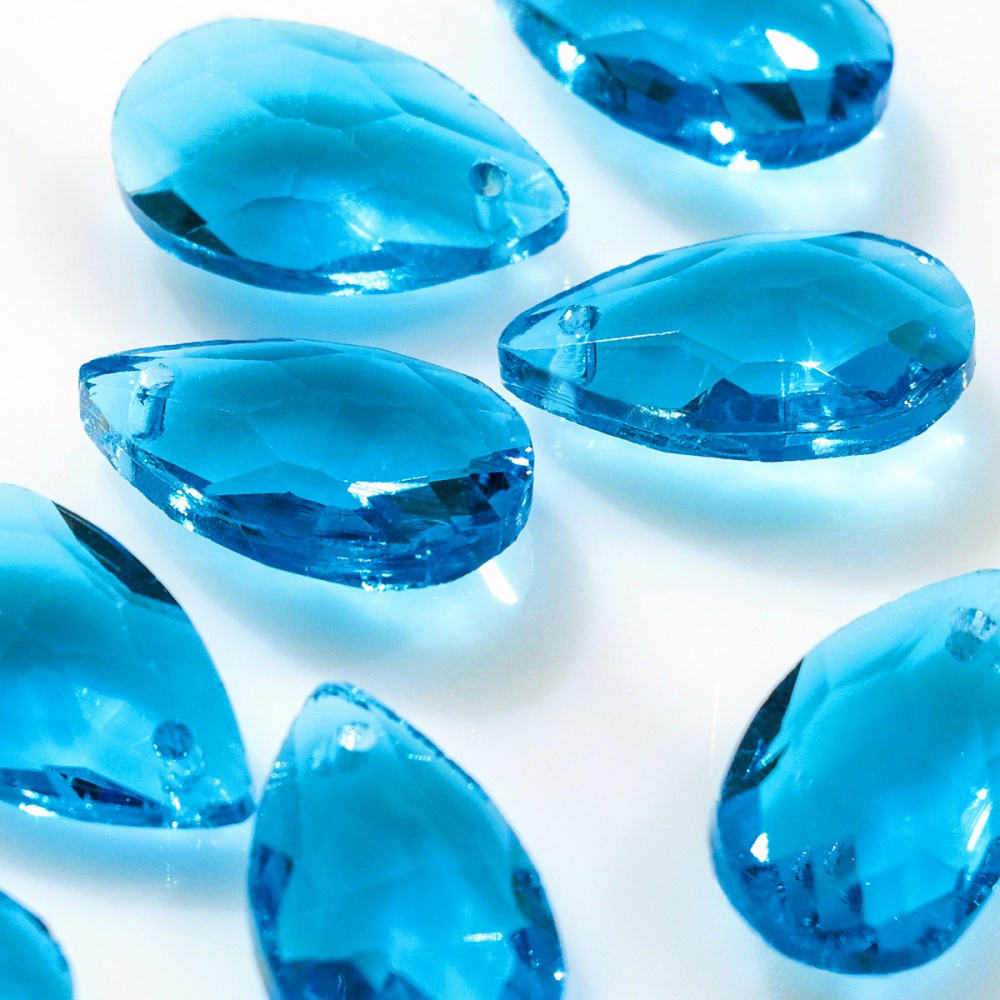 Подвеска стеклянная "Капля", граненая, цвет лазурный, 22х13 мм