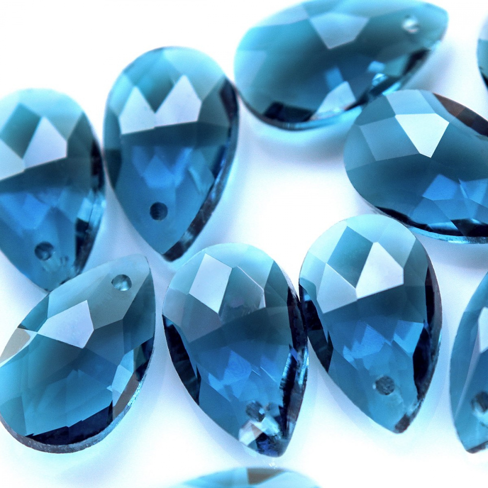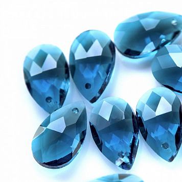 Подвеска стеклянная "Капля", граненая, цвет стальной синий, 22х13 мм