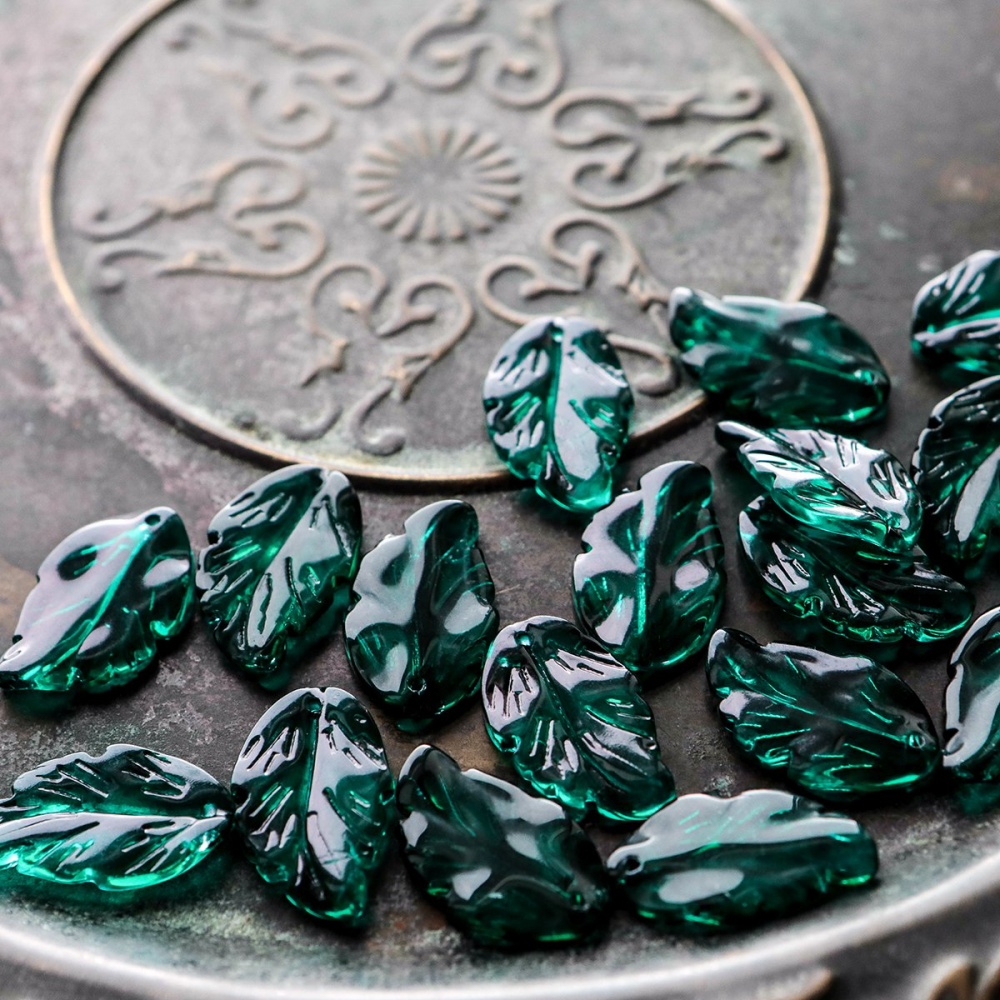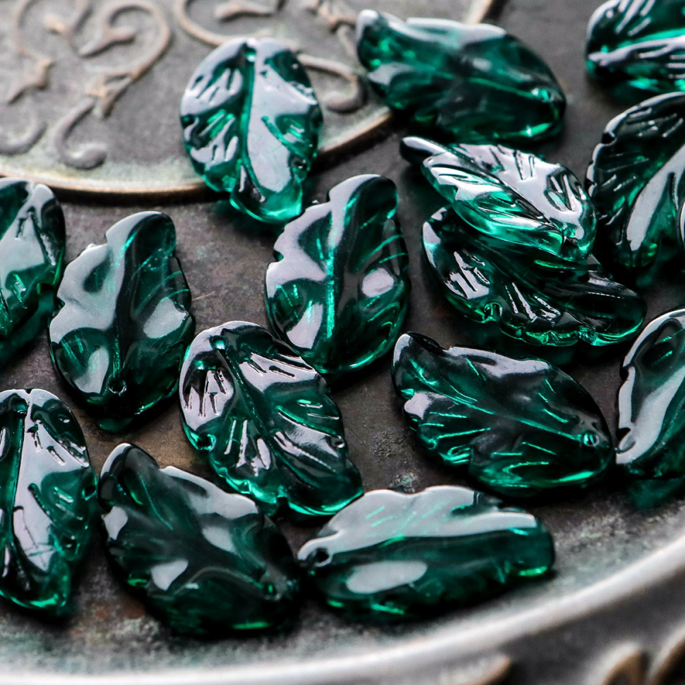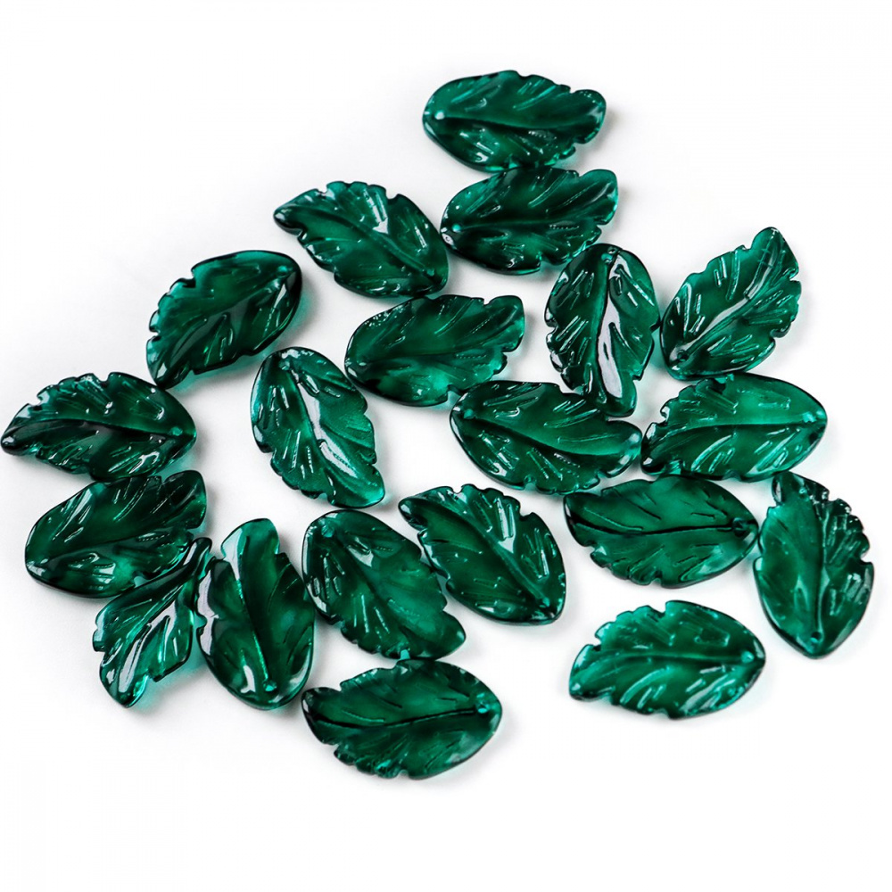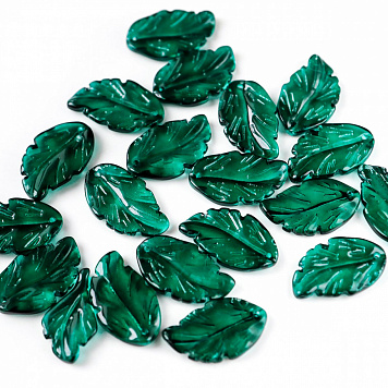 Подвеска стеклянная "Листик", цвет изумрудный, 28x17x3.5 мм