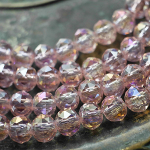 Бусина, стекло, "Абакус-кракле", граненая, цвет розовый АВ, 10х8 мм