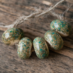 Бусина, Мурано "Пыльца", абакус, бирюзовый,13х9 мм