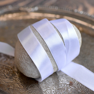 В свадебной атрибутике атласными лентами украшают открытки, декорируют праздничный стол, помещение. Из атласных лент мастерицы делают украшения своими руками: серьги, бусы, браслеты, из составленных бантов и розеток в технике макраме украшают броши или ободки. Атласными лентами вышивают картины и цветочные узоры на одежде. С ними сочетаются