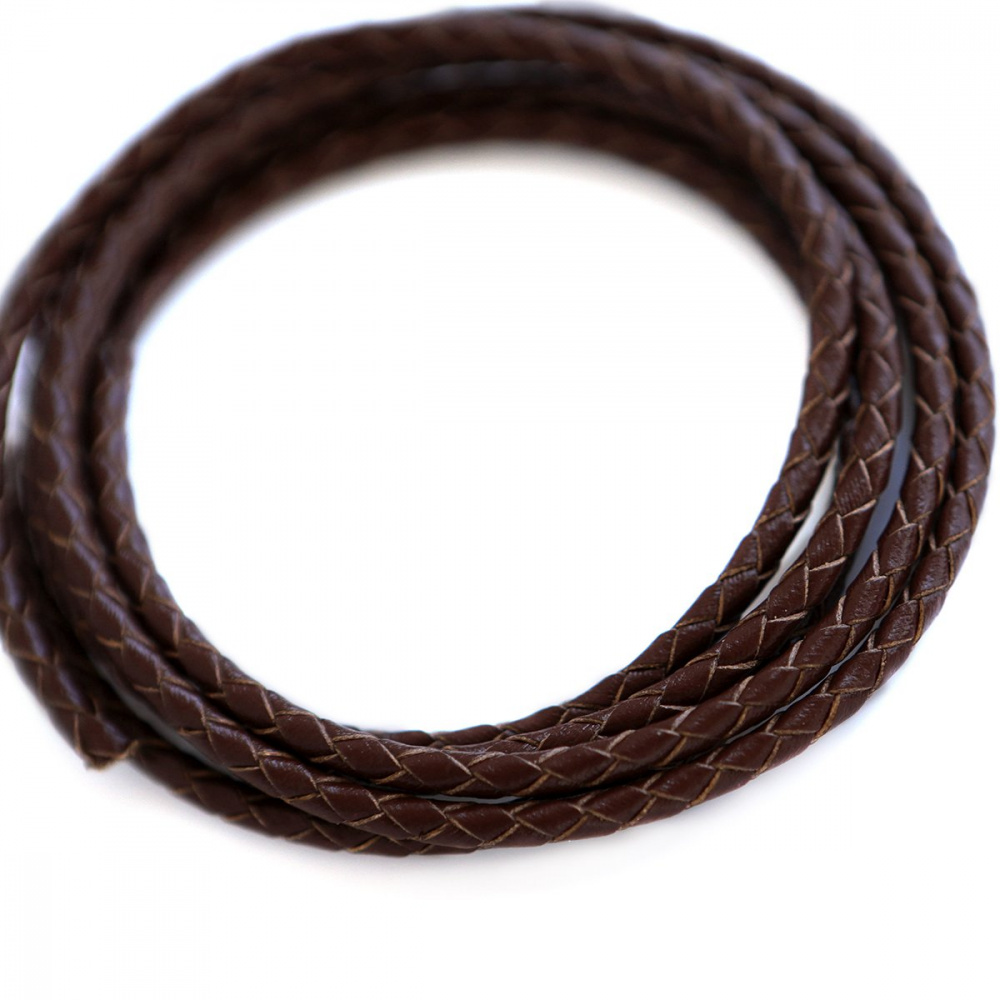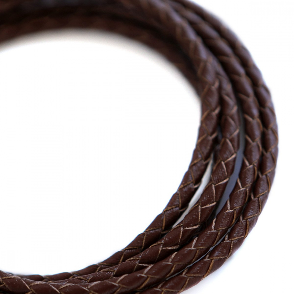 Шнур кожаный круглый, плетеный, цвет коричневый, диаметр 3.3 мм