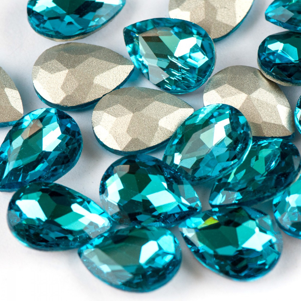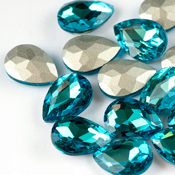 Кабошон стекло Кристалл, каплевидный, цвет Capri Blue 2, 18х13 мм