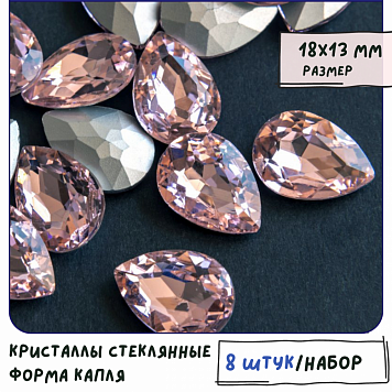 Кабошон стекло Кристалл, каплевидный, цвет Lt.Pink, 18х13 мм