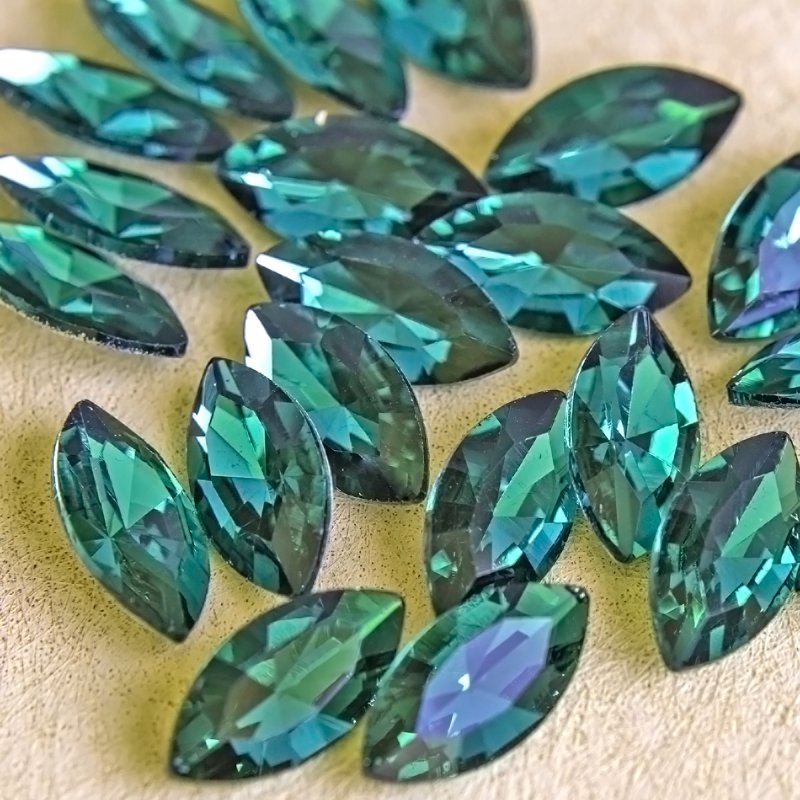 Кабошон стекло Кристалл, Navette, цвет Emerald, 18х9 мм