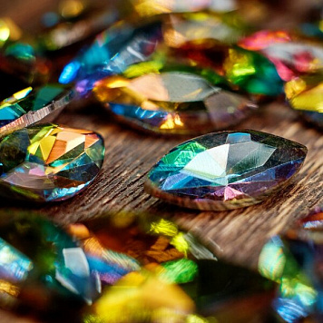 Кристаллы - это стразы с граненой задней фольгированной поверхностью, которая усиливает блеск. Это недорогая имитация драгоценного камня. Для обрамления кристаллов используют бисер и металлическую оправу (держатели-цапы).