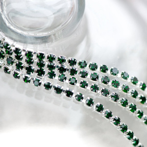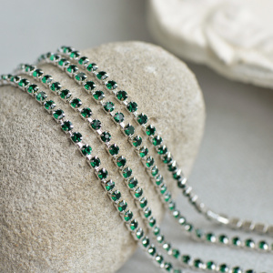 Цепочка "Стар", со стразами Emerald, цвет серебро, 2.5 мм, стразовая лента
