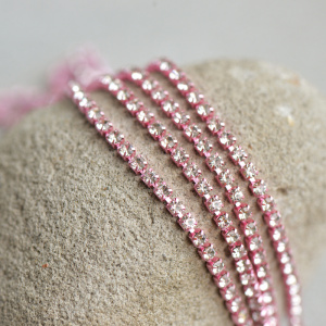 Цепочка "Стар", со стразами Cristal, цвет розовый, 2.5 мм, стразовая лента