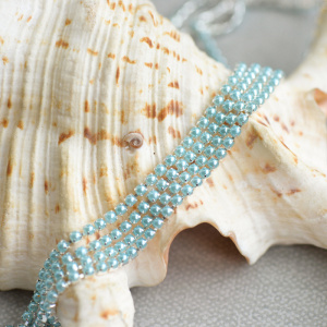 Цепочка "Перл", иск. жемчуг голубой, цвет серебро, 2.5 мм, стразовая лента