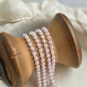Цепочка "Перл", иск. жемчуг светло-розовый, цвет серебро, 2.5 мм, стразовая лента