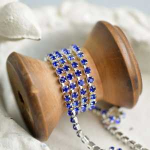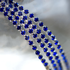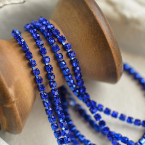 Цепочка "Стар", со стразами Sapphire, цвет синий, 2.5 мм, стразовая лента