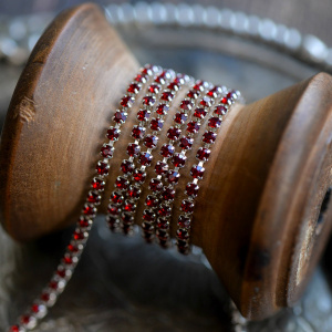 Цепочка "Стар", со стразами Siam, цвет серебро, 2.5 мм, стразовая лента